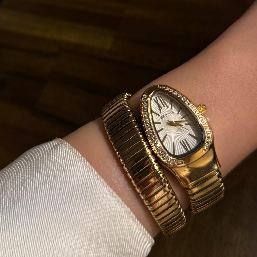 استمتعي بالفخامة الخالدة مع ساعة الثعبان رمز الأنوثة القوية والتصميم الجريء ، تلتف هذه الساعة حول معصمك بأسلوب أنيق وجذاب ، تجمع بين الذوق الراقي والتفاصيل الفخمة ، لتمنحك إطلالة لا تُنسى