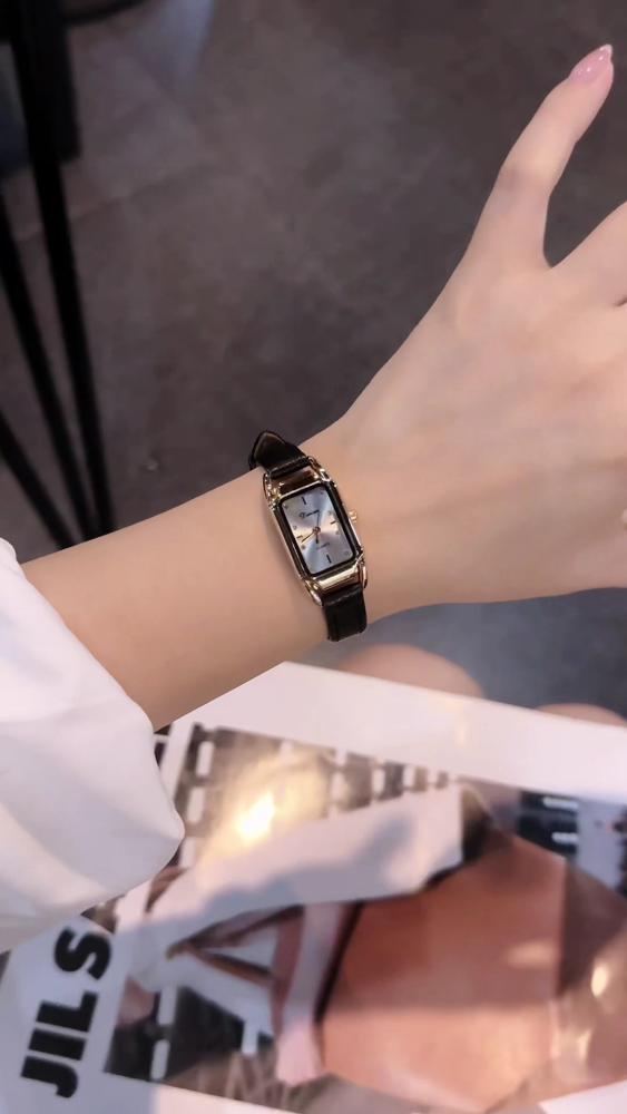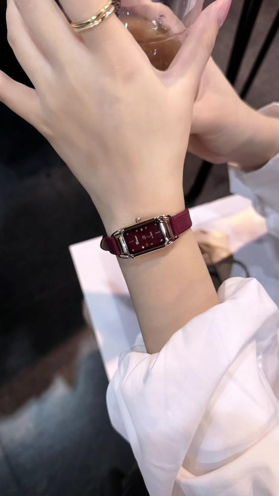 ارتق بإطلالتك مع هذه الساعة الفاخرة ذات التصميم المستطيل العصري، تجمع بين الفخامة الكلاسيكية واللمسة العصرية . مينا باللون العنابي العميق يعكس الرقي، محاط بإطار لامع يزيدها بريقًا،وسوار جلدي ناعم يضمن لك راحة وأناقة طوال اليوم.