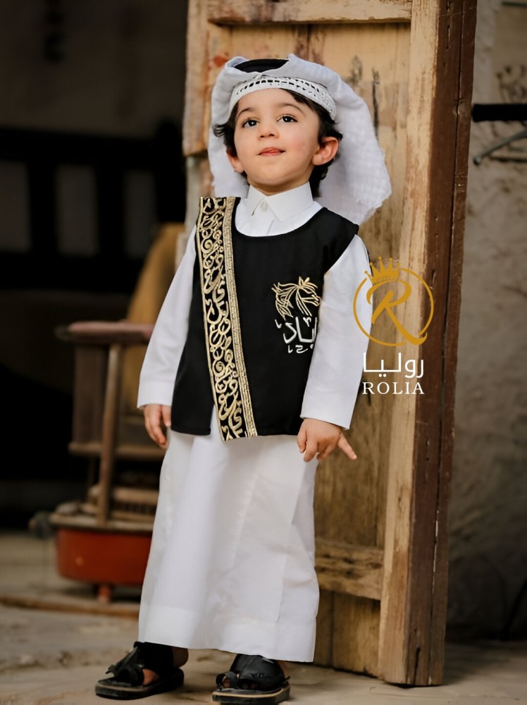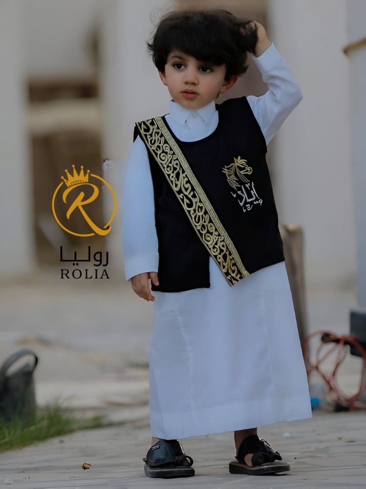 سديري فنديسديري أطفال كله عراقة وفخامة مع زخرفة الحروف العربية والاسم بطريقة فنية وبلونه الأسود الأنيق وهو متوفر للأعمار من 6 شهور حتى سنة ولكن بمقاسات تناسب الأجسام النحيفة والمتوسطة فقط**تنبيه**المقاسات تناسب الاجسام النحيفة والمتوسطة