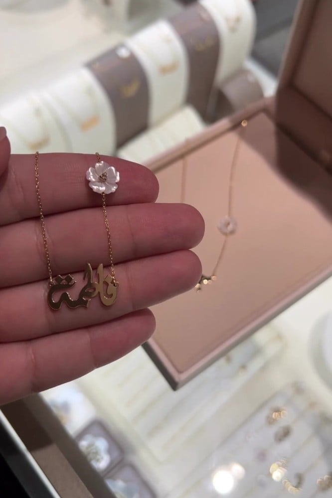 سلسال بالاسم مع ورده صدفسلسال بالاسم مع ورده صدفننفذ الاسم حسب طلب العميل متوفر باللون الذهبي او الفضي صمم خطوط بجميع اللغاتالورده صدف طبيعي