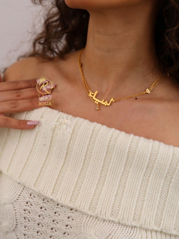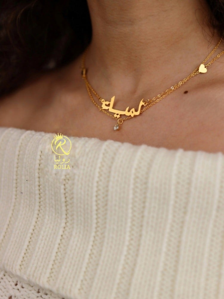 سلسال رقبة بتصميم سلسالين ممتزج بقلوب يساور عنقها ويبقى دليل حبكما
