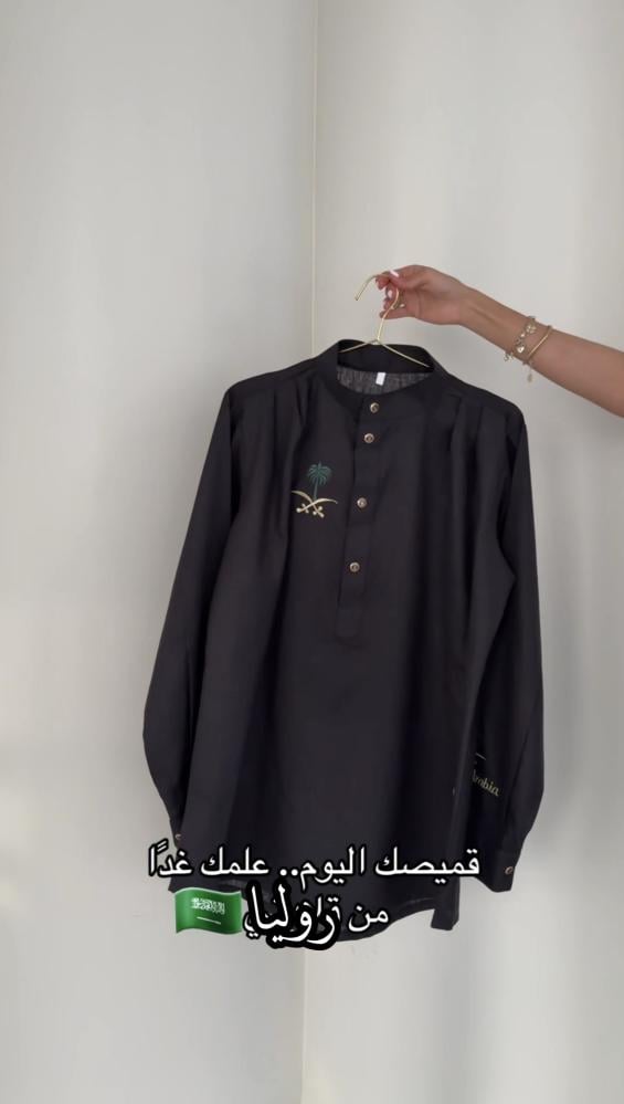قميص سيفين ونخلة بتطريز اسود فاخر